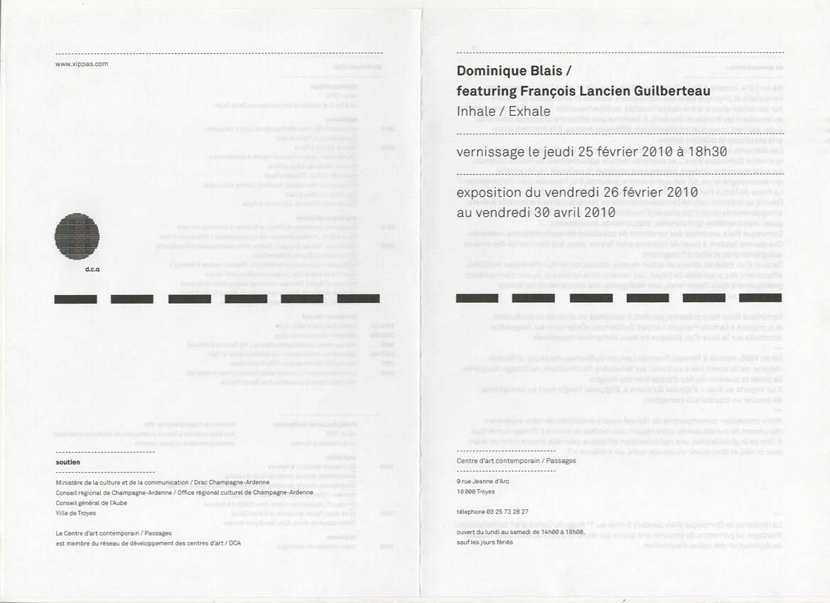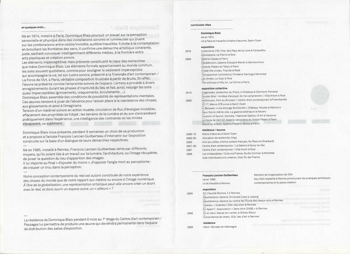 Born in 1974 and based in Paris, Dominique Blais continues his work on sensory and physical perception in sound and light installations that play on combinations of the visible/invisible and audible/inaudible. He invites contemplation by blurring the boundaries between the senses. He confirms a coherent, accurate artistic approach, intelligently bringing together different media at the frontier between visual arts and sound creation.
