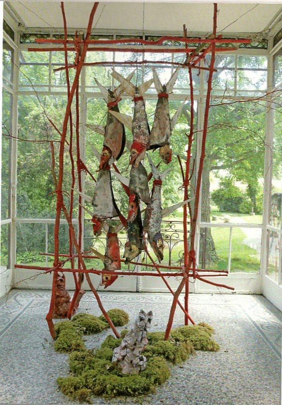 La vie et la mort dialoguent dans ses réalisations à travers les couleurs vives des écailles tandis que les poissons séchés exhibant leurs corps mornes semblent déjà morts. Ces œuvres témoignent d’une inquiétude face au monde. Son art peut être compris comme une critique du monde moderne doublée d’une nostalgie d’un temps où l’on ne craignait pas la nourriture. Les motifs de la chaine et du filet récurrents dans ses œuvres, dénoncent les désirs contradictoires de liberté et de dépendance des hommes.